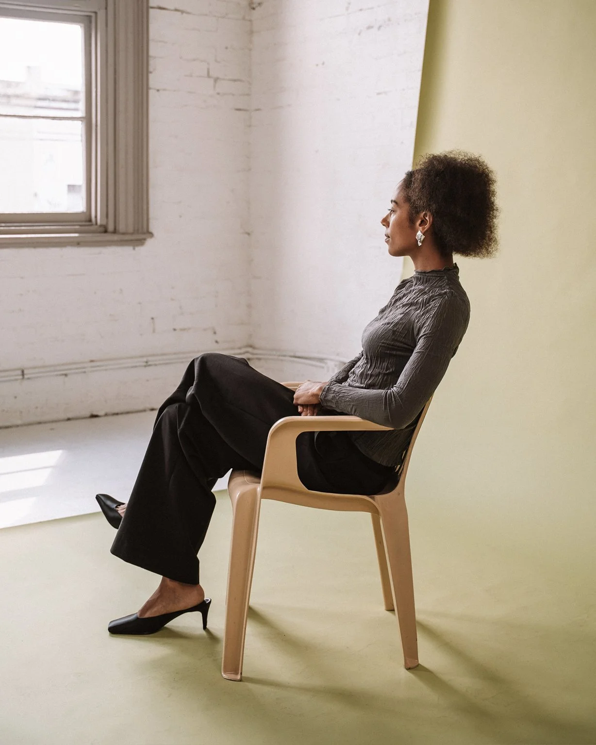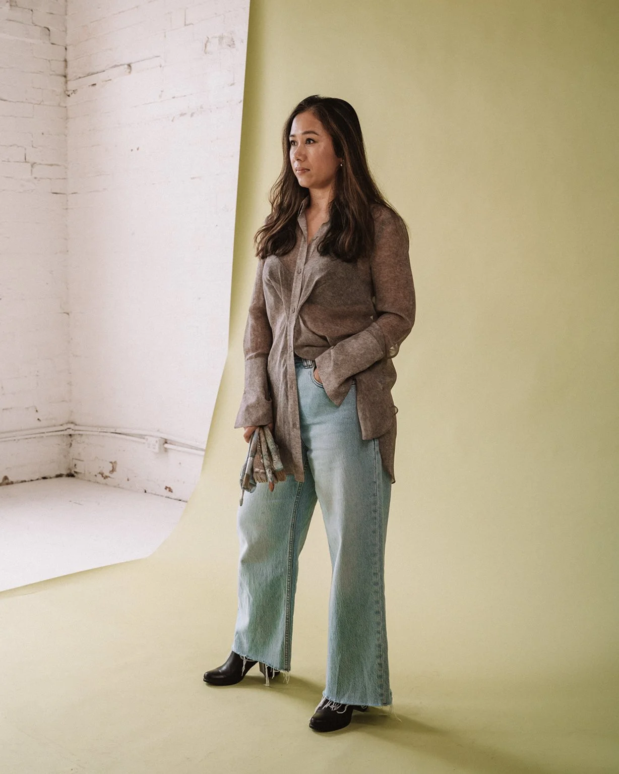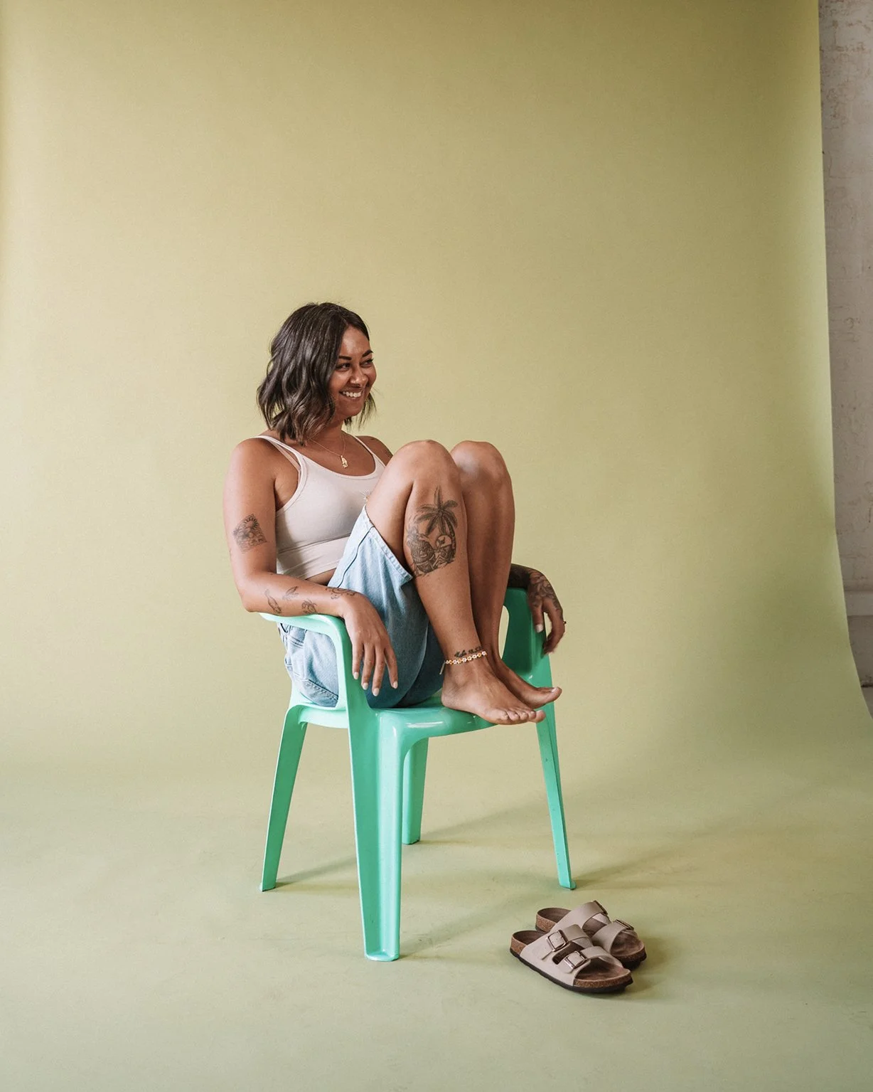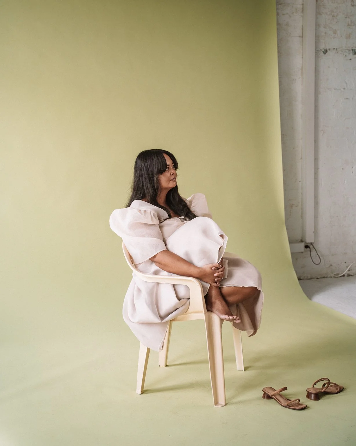 Already a big admirer of Dalin’s work, meeting her in person only deepened that admiration. She carries the same softness as her practice – gentle, considered and quietly powerful. There’s an ease to her that draws people in, and beneath that is a story that feels expansive and layered. Armed with a jar of paintbrushes, she stepped into the frame with confidence and stayed long after her session, uplifting others and fully present in the room.