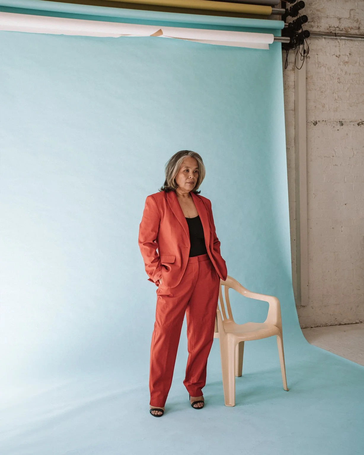 A powerhouse in the hospo and creative scene, yet one of the most humble people in the room, Luisa came straight from work and moved gracefully into the shoot. Hair and makeup done on-site, energy fully intact. One of the few confidants I’ve been relying on during these early months of MADE IN KIN, Luisa is an “ate” to me. Watching her step in front of the camera in her red suit, I couldn’t have been prouder.