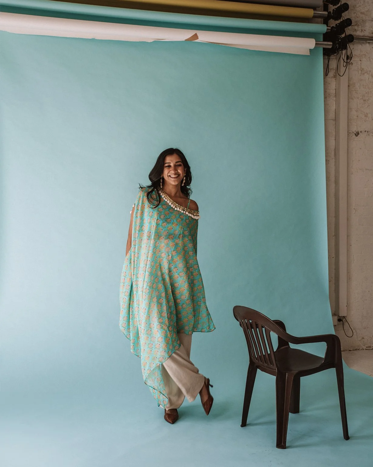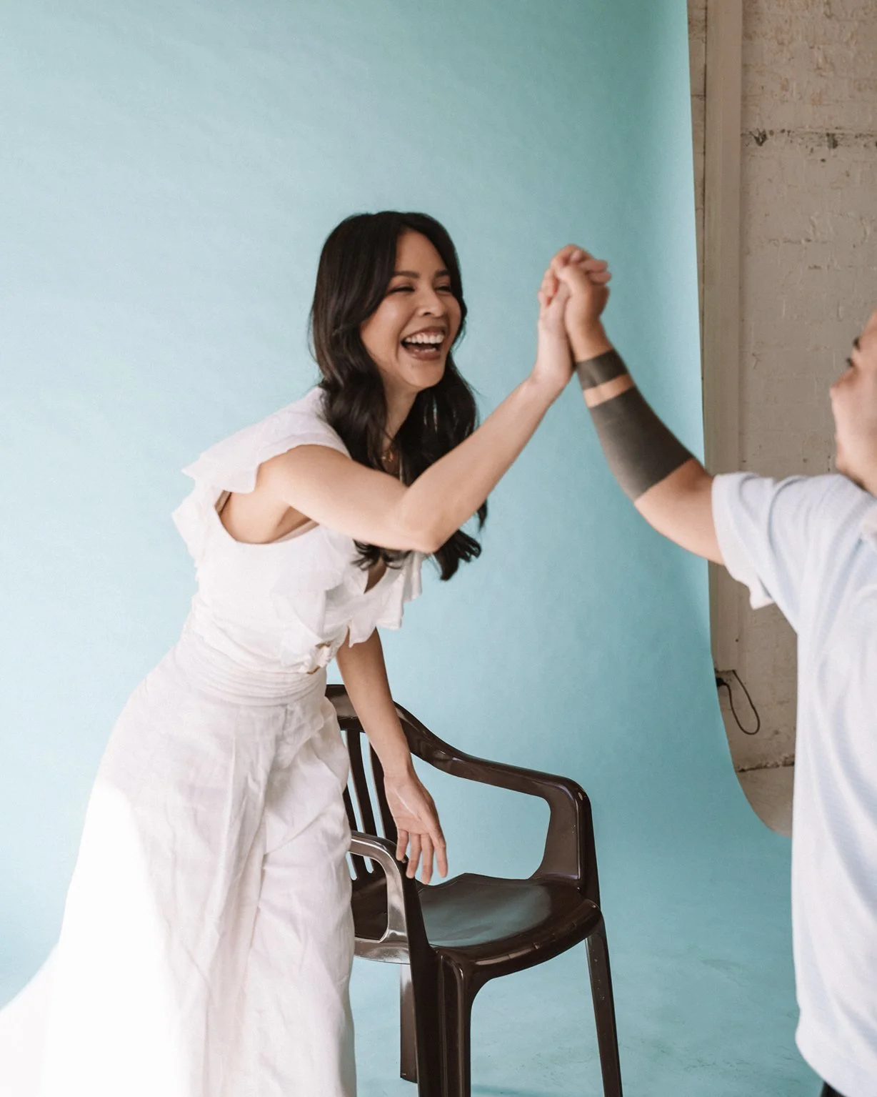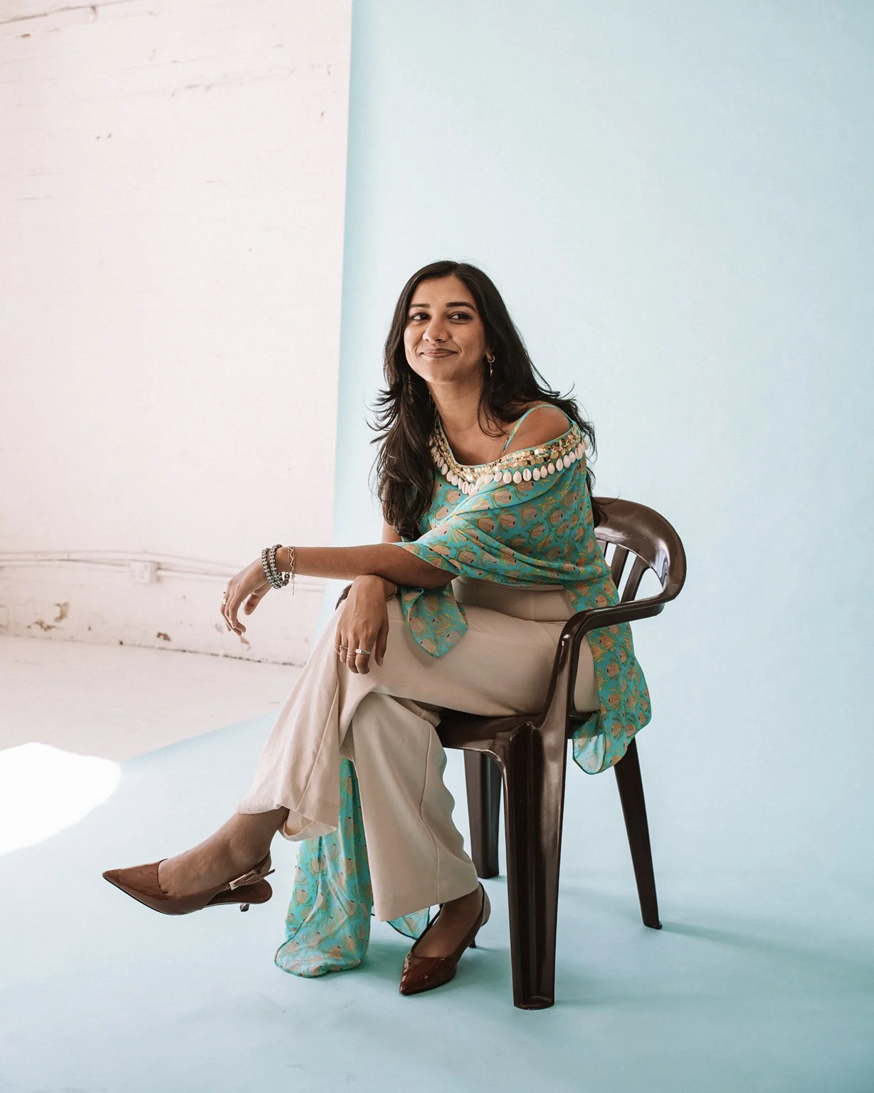 Fresh from travels in the Philippines, I stepped in front of the camera again – still nervous, but proud in my Morena skin. This time, I wore the Filipiniana dress I had worn for my cousin’s wedding just weeks earlier, its formality contrasting with the plastic chair beneath me. There was less pressure this time, but more clarity. A deeper understanding of what MADE IN KIN is becoming, and what it asks of me. I’m ready for it.