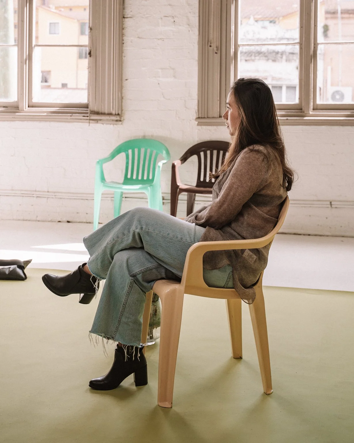 Some of the creatives in the room I’d been speaking to for months. Others I met for the first time that day. All were invited with intention – across disciplines, ages and experiences. And yes, the plastic chairs made the journey too – shipped from Melbourne to Sydney, ready to hold another round of stories.